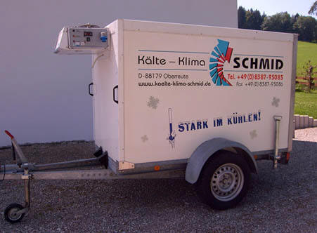 Der Anhänger ist mit einer Kühlanlage vom Pluskühlbereich(+8°C) bis zur Tiefkühlanwendung (-20° C) für Stationärbetrieb ausgestattet.